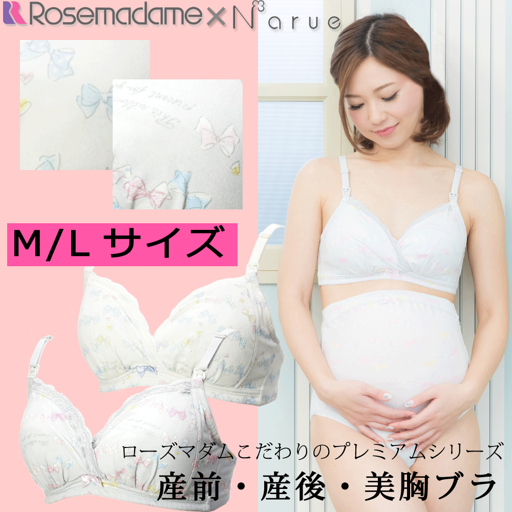 7655 マタニティくるみんブラ ナルエー/Narueコラボ【リボン柄】授乳ブラ ストラップ&クロスオープン 産前産後《下着/リラックス/バストケア/授乳ブラ/出産準備》マタニティ授乳ブラ〔つわり対策/産前/産後/授乳〕スタイリストご用達 ナルエー/Narueとのコラボ下着授乳らくちん、ストラップ&クロスオープンタイプ♪カップつきカップ脇のパワーネットでバストの横流れをストップ縫い合わせをくるんで肌あたりは優しくノンストレスカップ裏は綿100% ふんわり綿混素材ノンワイヤーで締め付け感なく、とてもやさしい着け心地のハーフトップです。「ナルエー/Narue」スタイリスト御用達ブランド。映画、ドラマ、CMに多数登場。ルームウェア、パジャマ 取り扱い点数ナンバー1。「可愛い」に手が届くお部屋コーディネイトがたくさん。マタニティブラを選ぶポイント1.マタニティブラを買うタイミング妊娠がわかったらすぐがおすすめです。理由1:妊娠初期のつわりでいつものブラの締め付けが苦しく感じ始めます。理由2:妊娠とともにおっぱいが大きくなっていつも使っているブラがきつく感じ始めます。理由3:妊娠期はお肌もデリケート、やさしい綿素材のものを準備しておけば産前はもちろん産後の授乳期にもずっと使えます。2.マタニティブラのサイズ選びマタニティブラ(ハーフトップ)の基本的な考え方は…妊娠前にMサイズを使用していた方はマタニティMを選びます。*成人女性の洋服Mサイズのバスト範囲が79?87cmです。(JIS規格) マタニティハーフトップの範囲は、バストが大きくなることを見越して設定してあるので一般のMサイズの範囲よりも大きいです。だから「マタニティM」「マタニティL」と独自の呼び方をしています。 合わせて買いたい!授乳ブラ/マタニティショーツ/キャミソール 商品詳細品番112-7655-01 カラーグレーアイボリー着用時期妊娠初期?授乳期素材素材:綿95%、ポリウレタン5% サイズマタニティM(バスト 86?94cm) マタニティL(バスト 93?101cm)