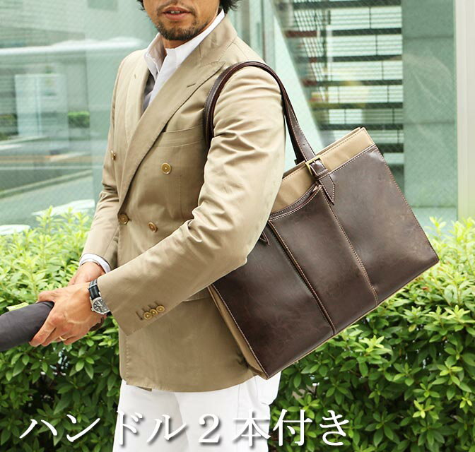 人気モデルY10を、よりビジネスシーンに特化させたオール水晶合皮モデルが登場。帆布だと書類が濡れてしまうのでは?という不安も解消。B4ファイルも収納可能になり、さらに裏地のカラーに合わせたステッチで遊び心をプラス。ハンドルが2タイプ付属で、その日の気分で手持ちと肩掛けを選べるのもこのモデルの魅力。シンプルでスタンダードなデザインは銀行員や弁護士の方にもおすすめです。重量:1080g、縦32×横42×9.5cm ギフト対応◆◇◆ B4収納可能 Y10ダブルハンドルシリーズ 全3種 ◆◇◆ 帆布コンビブリーフ人気のスタンダードモデル11,400円(税抜) 帆布コンビブリーフ(ラウンド)開けやすいラウンドファスナータイプ12,500円(税抜) ダブルハンドルブリーフ雨も安心のオール合皮タイプ13,000円(税抜)