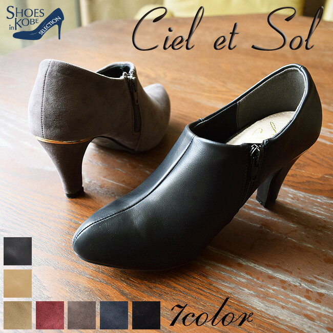 ■ciel et sol(シエルエソル)はクオリティの高さを維持しつつもカジュアルでエレガントな雰囲気を大事にしたインポートブランド。生地選びからデザインまで一貫して神戸で企画しています。 楽天国際配送対象商品(海外配送) 詳細はこちらです。 Rakuten International Shipping Item Details click here履き口の斜めカッティングが足首を綺麗に魅せる定番ブーティに、 後ろ姿に自信が出る、ゴールドラインアクセントが登場。 ヒールの高さは約7.5cm。 安定感のある太めのヒールで、歩きやすさにも配慮しました。 落ちついたシックなカラーと、起毛の短いスエード調素材がマットな風合いになります。 光沢を抑えたスムース素材も2色、ご用意しました。 「返り」がよくハイグリップな溝が付き、滑り止めの効いたソールも好評です。 脱ぎ履きはサイドのジップアップで簡単に。 やわらか素材が足にフィットして本当に履きやすいんです!! ※素材の関係上、箱から出した際に商品にシワが入っている場合が ございますが、履く度に馴染んでいきますので不良ではございません。 ご了承くださいませ。 ■ciel et sol(シエルエソル)は、神戸デザインのインポートブランドです。 ●カラー:(スエード)ブラック・ワイン・グレー・ネイビー・オーク(スムース)ブラック・ベージュ ●サイズ:S/M/L/LL ●ヒール高さ:約7.5cm ●ワイズ:2E ●重さ:約210g (※Mサイズ/片足) ●素材:合成皮革 ソール:合成ゴム ※実寸で測ったものです。ハンドメイドで生産しておりますので、若干の誤差はご容赦ください。 ※目安表示は一般的な靴のサイズ感を元に当店独自の基準で算出しています。 ※画面の環境上、実物と若干色が異なる場合があります。 ※発送時検品・運送トラブル等で発送が遅れる場合はご容赦ください。 ストッキング着用でMサイズだと小指の辺りが少し痛い感じですがかかとに隙間があり、脱げる程ではないですが歩くとカパカパします。 Sサイズだときついので、選ぶならMサイズにしてカバーソックスを履いて中敷をプラスしようと思います。 ストッキングでMサイズを試着しました。 パカパカもせず、長さも幅もほどよくぴったりでした。 窮屈感も痛い所もありませんでした。 ストッキングで着用でLサイズは幅はゆったり履けますが、かかとがゆるく指1本分あいてしまいます。 Mはかかとのあきは有りませんがストッキングで前に滑 るせいか、小指の指先が当たる感じがあります。Lサイズでは大き過ぎるので少し馴らしてMサイズを履くのが良さそうです。