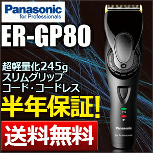 ★メーカー希望小売価格はメーカーカタログに基づいて掲載しています (上記テキストクリックで画像を表示します)送料無料!!! Panasonic コードレスバリカン ER-GP80-K【パナソニック プロ用 業務用 散髪 床屋 サロン 坊主 セルフカット】ER1610後継機 商品詳細 Panasonic プロリニアバリカン ER-GP80-K(パナソニック コード・コードレスバリカン) ------------------------------------------------------------- ■特徴 1.髪の量をセンシング!自動パワーコントロールでカットパワーを一定に 2.スリムグリップで多様な持ち方に対応 3.ER1610より軽量化で、さらに使いやすく 4.特殊カーボンコーティングとチタンコーティングで耐久性向上 5.5段階刈り高さ調節(0.8?2mm/0.3mm刻み) 6.充電スタンドもコンパクトでスタイリッシュに ------------------------------------------------------------- ■仕様 品番:ER-GP80-K 電源方式:充電・交流式 充電時間:約1時間(室温10?35度) コードレス使用時の連続使用可能時間:1回の充電で約50分 本体寸法:高さ17.6×幅4.7×奥行4.8cm 本体質量:約245g 電源コードの長さ:3m 電圧:AC100-240V(50-60Hz) 消費電力:約9W(AC100V交流式使用時)、約10W(AC100V充電時) 生産国:本体-日本 POSコード:4549077410450 ------------------------------------------------------------- ■付属品 アタッチメントコーム3個(3mm・4mm)(6mm・9mm)(12mm・15mm)、 充電スタンド、掃除用ブラシ、専用オイル ------------------------------------------------------------- ■使用上の注意 ・水洗いできません。 ・取扱説明書をよくお読みの上、ご使用ください。 ------------------------------------------------------------- ■保証 メーカー保証半年 ※保証書に判を押す為に一度開封いたしますことをご了承下さいませ。 オススメ! バリカンのお手入れにこれ1本♪同時購入をおススメします!