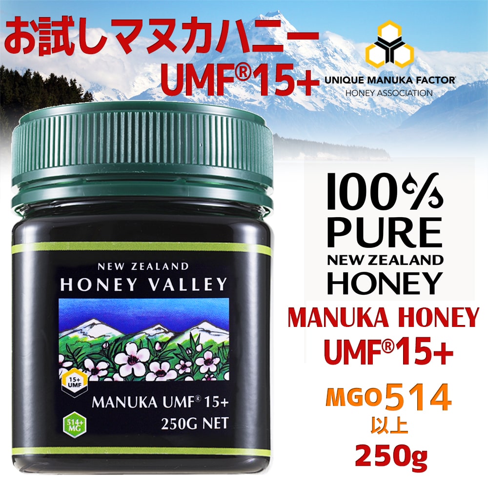 同梱にオススメ! マヌカハニー UMF15+ 250g ハニーバレー 名称 マヌカハニー 原材料名 天然蜂蜜 内容量 250g 賞味期限 製造より5年 保存方法 高温多湿、直射日光を避けて保存してください 原産国 ニュージーランド メーカー 100% Pule New Zealand Ltd(旧 ハニーバレー社) 広告文責任 株式会社ハンズトレーディング 06-6211-9666 E-mail:info@hands-web.co.jp 輸入者名 株式会社ハンズトレーディング 区分 ニュージーランド製 健康食品 注意事項 一歳未満の乳児には与えないでください。(妊娠中・授乳中の方は、問題ありません。) 配送方法 宅配便 送料 1個の場合は540円2個以上で送料無料! ※沖縄県への発送は+540円が必要になります。 *キーワード*【あす楽_土曜営業】【HLS_DU】